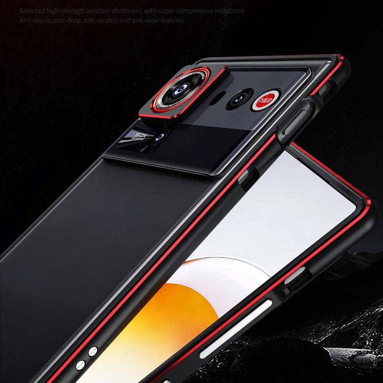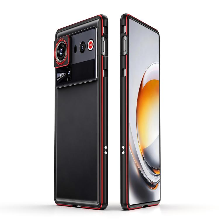 For ZTE nubia Z80 Ultra Aurora Series Lens Protector + Metal Frame Phone Case(Black Red)