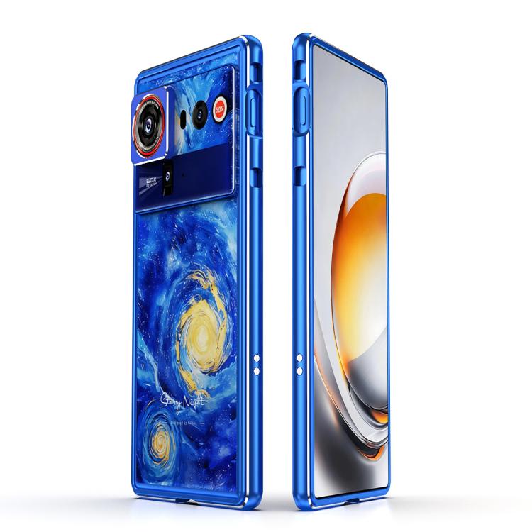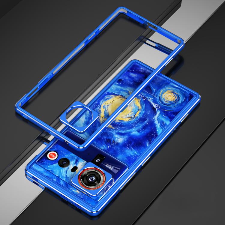 For ZTE nubia Z80 Ultra Aurora Series Lens Protector + Metal Frame Phone Case(Blue Silver)