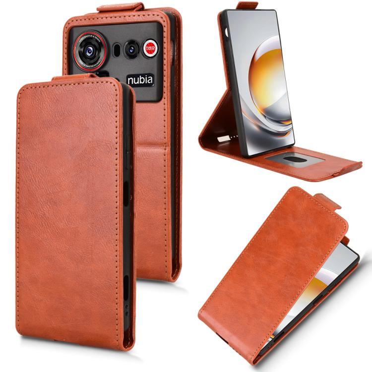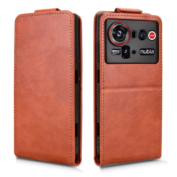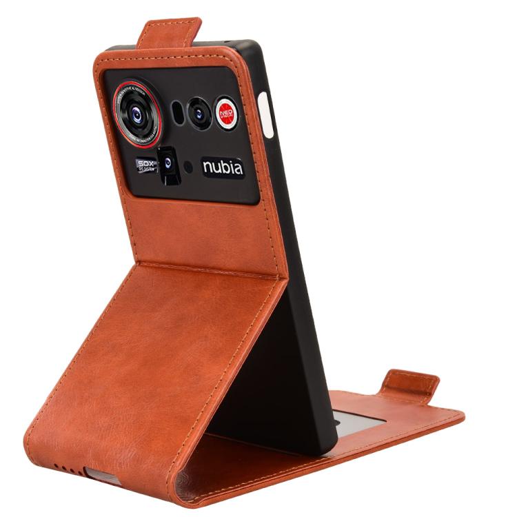 For ZTE nubia Z80 Ultra Magnetic Vertical Flip Leather Phone Case with Buckle(Brown)