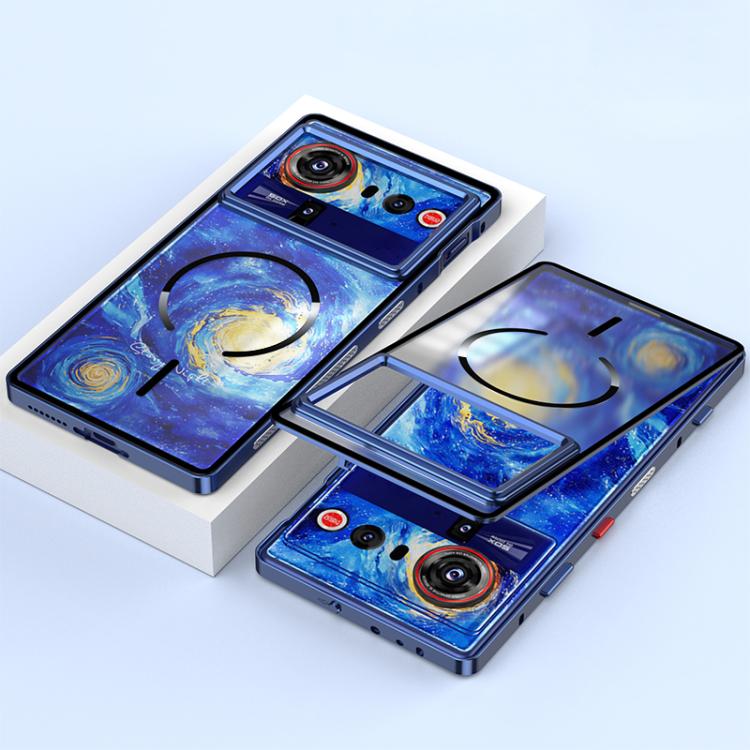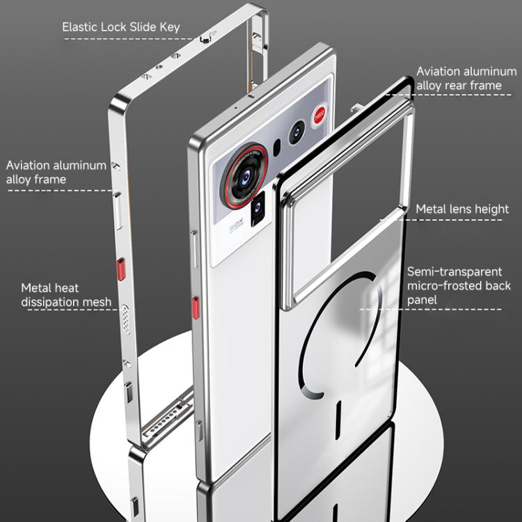 For ZTE nubia Z80 Ultra Single-sided Snap Buckle Metal Frame Frosted MagSafe Phone Case(Titanium Blue)
