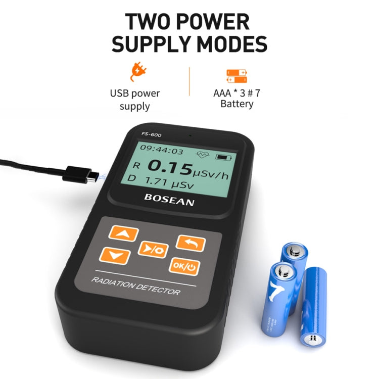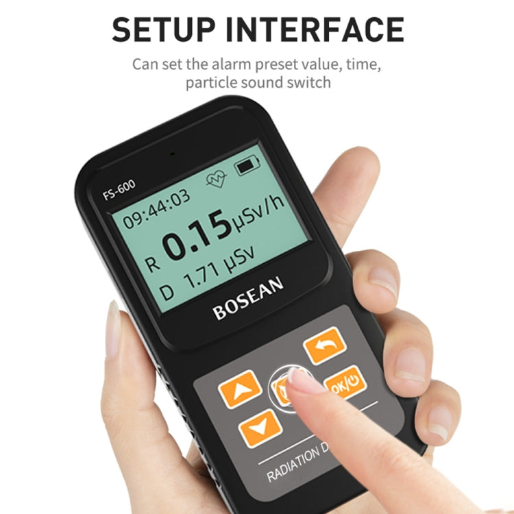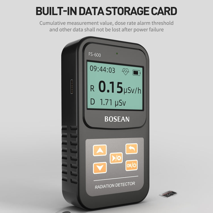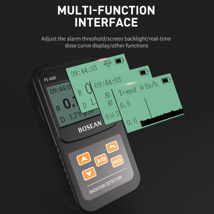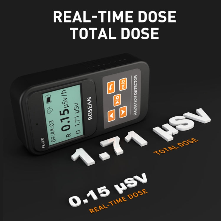 FS-600 is a small high-range radiation tester whose main function is to monitor X-rays, gamma-rays and beta-rays. The tester of this instrument is an energy-compensated Geiger counter, which has the characteristics of accurate measurement and high measuring range. This product uses a 32-bit microprocessor, equipped with a 64x128 dot matrix LCD display, easy to operate, and strong anti-interference ability. The device provides an audible alarm, and the alarm threshold is continuously adjustable. When the alarm threshold is reached, an alarm is issued to remind the staff to pay attention to safety. The main counting index of the instrument conforms to the international standard.