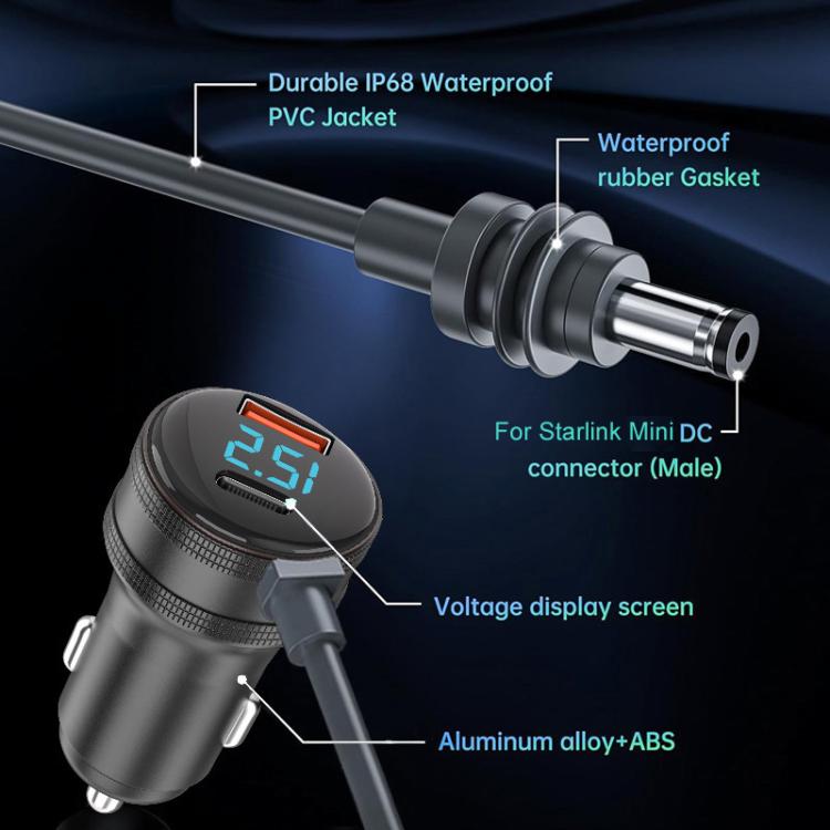 FSJ-089 163W For Starlink Mini Digital Display Waterproof Car Charger DC Power Cigarette Lighter, Spec: Grey 3m
