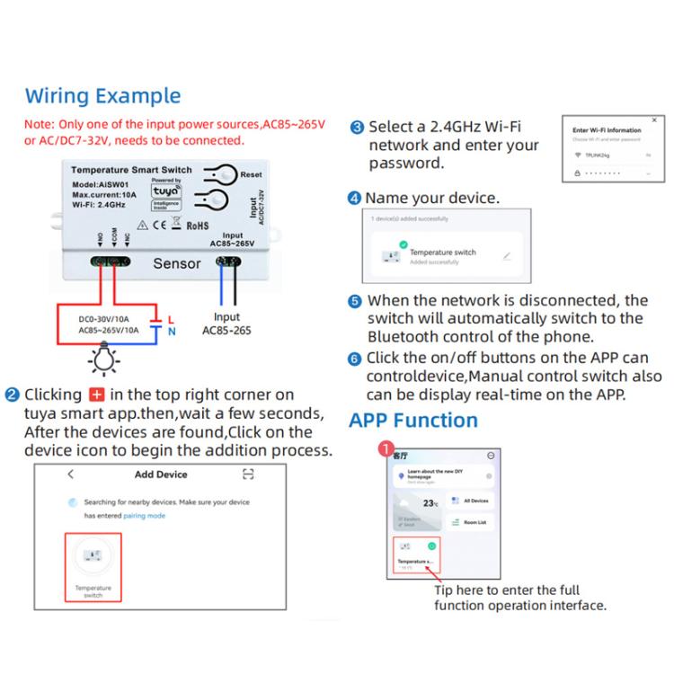 1. APP remote control, can be remotely turned on/off via the Tuya or Smartlife APP, and can monitor the temperature and switch status in real time. you can also set the temperature range to achieve automatic control of the switch