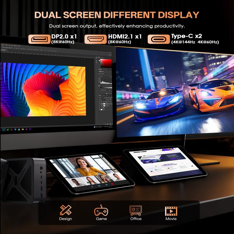 GXMO GH8 Windows 11 Pro Mini PC, No Memory, AMD Ryzen 9 8945HS Octa Core Processor(UK Plug)