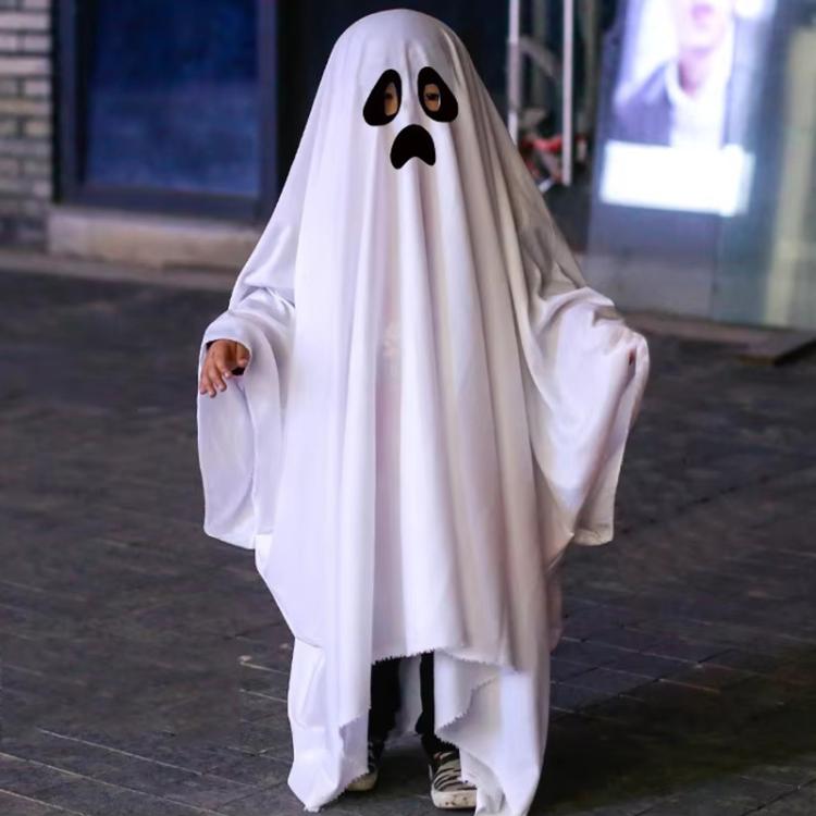 Halloween Horror Cosplay White Ghost Masquerade Cape, Size: M(Bitter Gourd Face)
