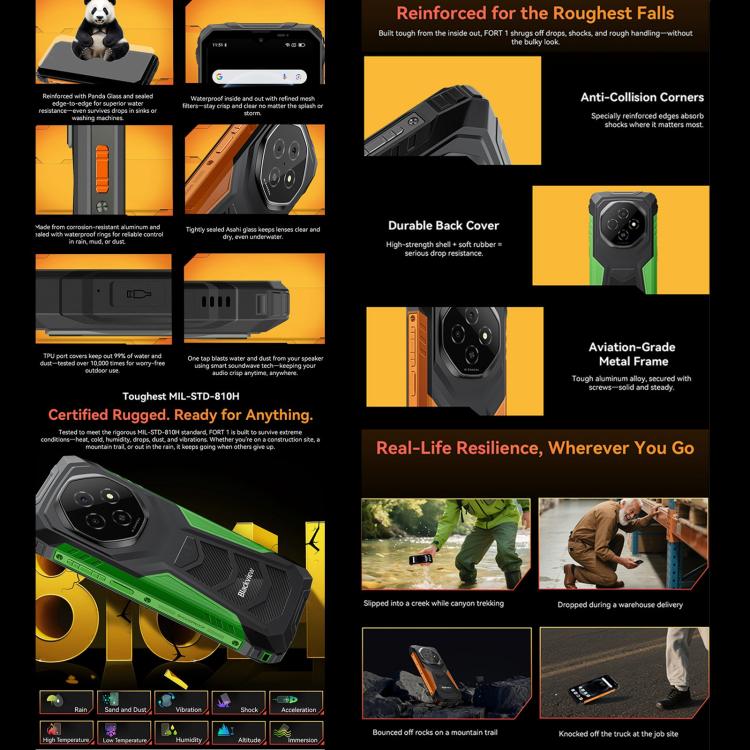 [HK Warehouse] Blackview FORT 1, 6GB+256GB, 6.56 inch Android 15 Unisoc UMS9230E T615 Octa Core, Network: 4G, OTG, NFC (Green)