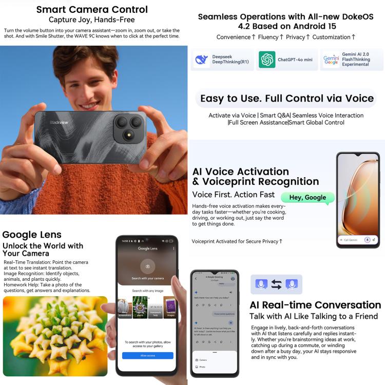 [HK Warehouse] Blackview WAVE 9C, 4GB+128GB, 6.56 inch Android 15 Unisoc T603 SC9863A Octa Core, Network: 4G, OTG (Black)