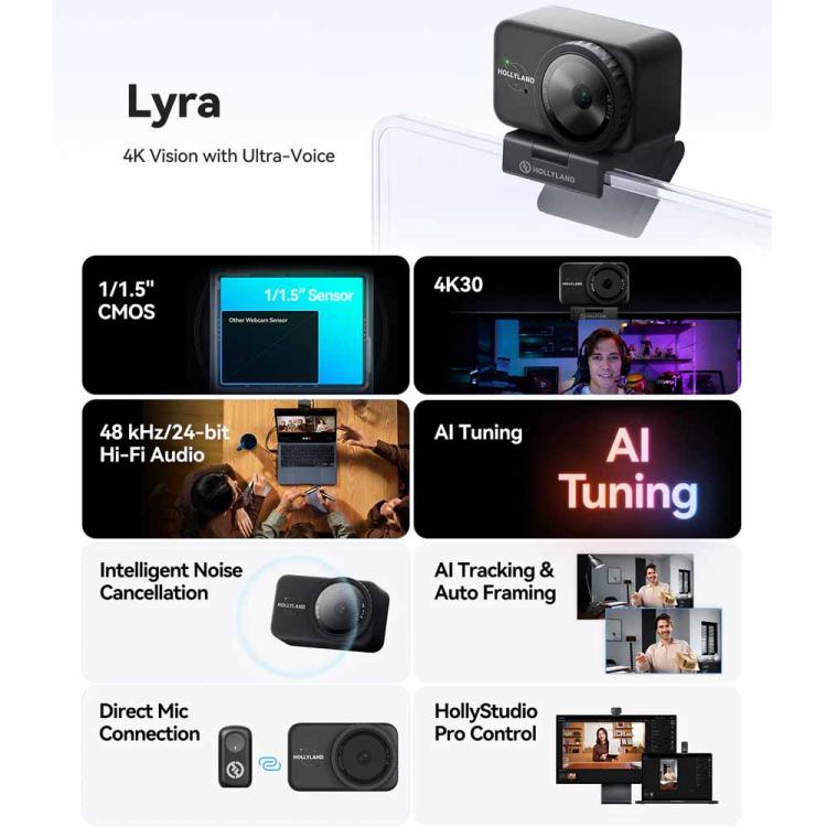 5. The Lyra webcam features the LARK A1 wireless microphone solution. Therefore, the built-in microphone boasts powerful 48 kHz/24-bit audio recording capability.