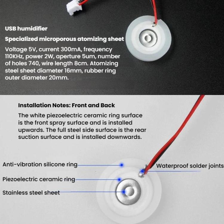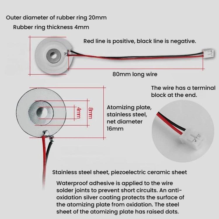 3. The atomization sheet must be used together with a circuit board of the same frequency to achieve the ideal spray volume