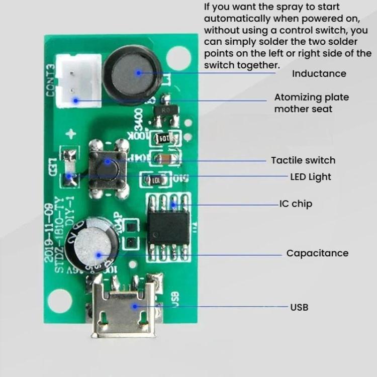 Humidifier USB Spray Module Atomizer IC Driver Circuit Board, Interface: Type-C