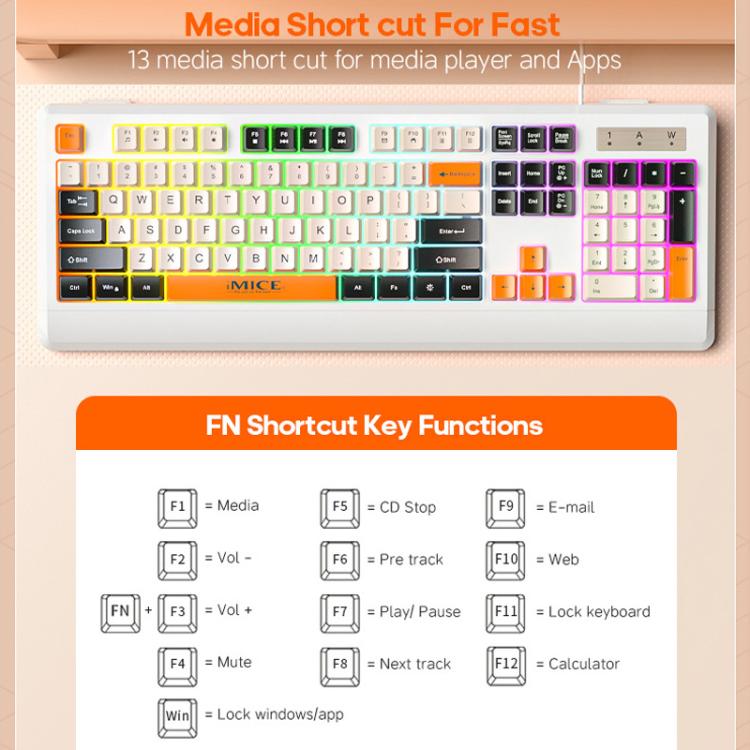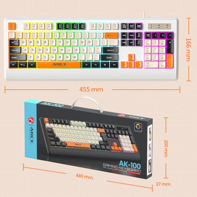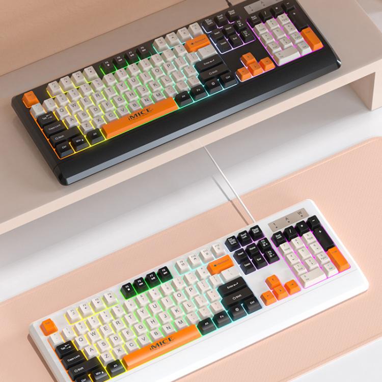 iMICE AK-100 Wired USB Rainbow Backlit Color Block Keycap Keyboard(White)