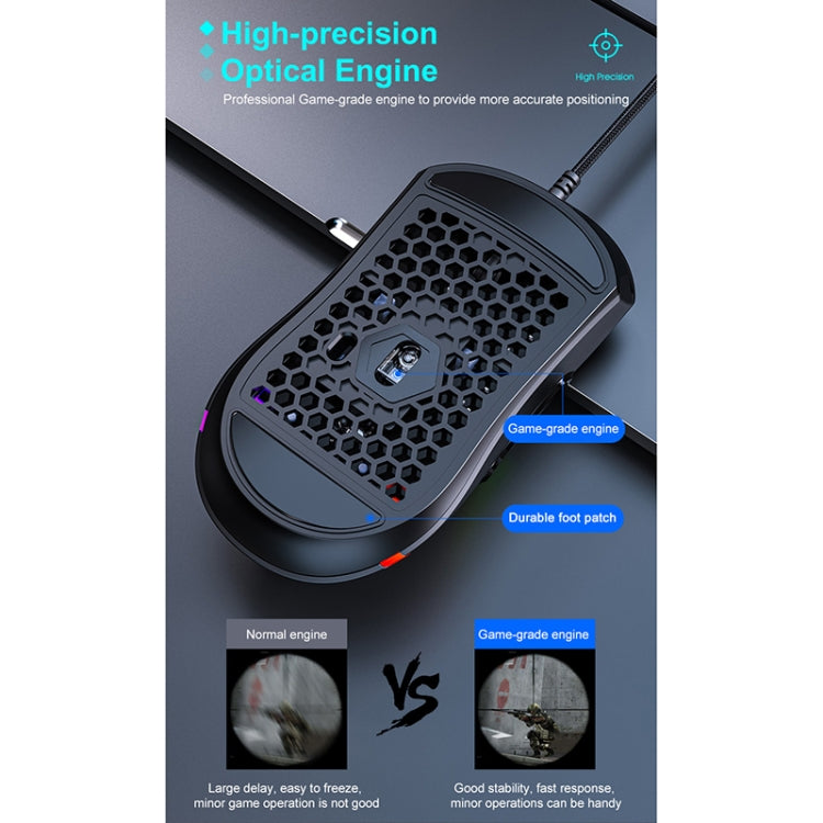 iMICE T60 7-key Custom Colorful Luminous Wired Honeycomb Gaming Mouse, Cable Length: 1.8m(Black)