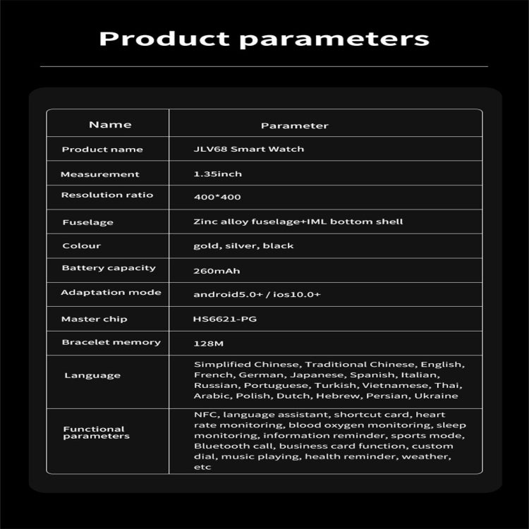 JLV68 1.35 inch Color Screen Smart Watch,Support Heart Rate Monitoring / Blood Pressure Monitoring(Black)