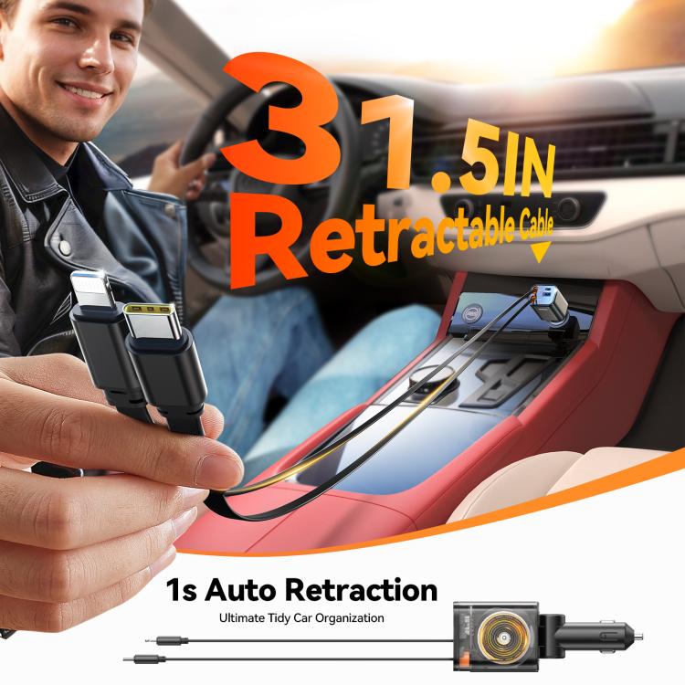 2. 80cm retractable cable, socket design for easy storage