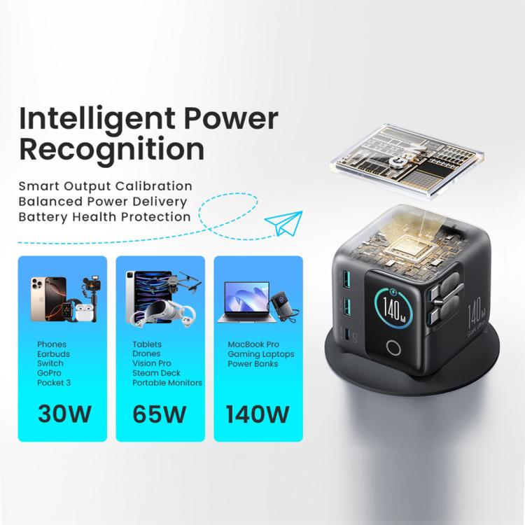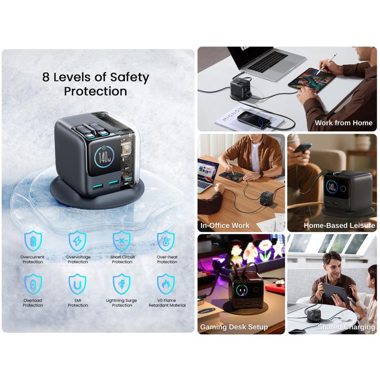 JOYROOM JR-TRD01 PODIX 140W 5-Port Desktop GaN Charger, Power Plug:US Plug(Dark Gray)