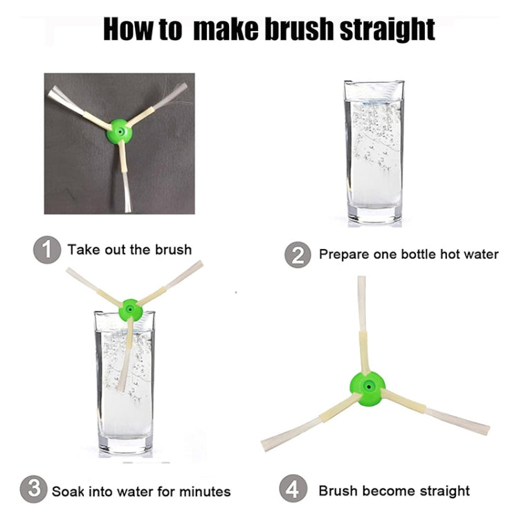 2. Easy to replace and precise installation. When the bristles of the side brush are bent, you can add an appropriate amount of warm water to the cup and soak the bristles for a few minutes to restore them to their original shape.
