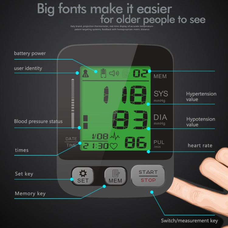 JZ-256A Tri-Color Backlight Automatic Upper Arm Sphygmomanometer Home Electronic Sphygmomanometer, Size:22-42cm(No Voice Broadcast)