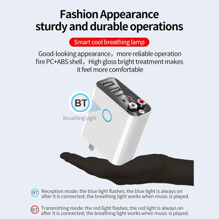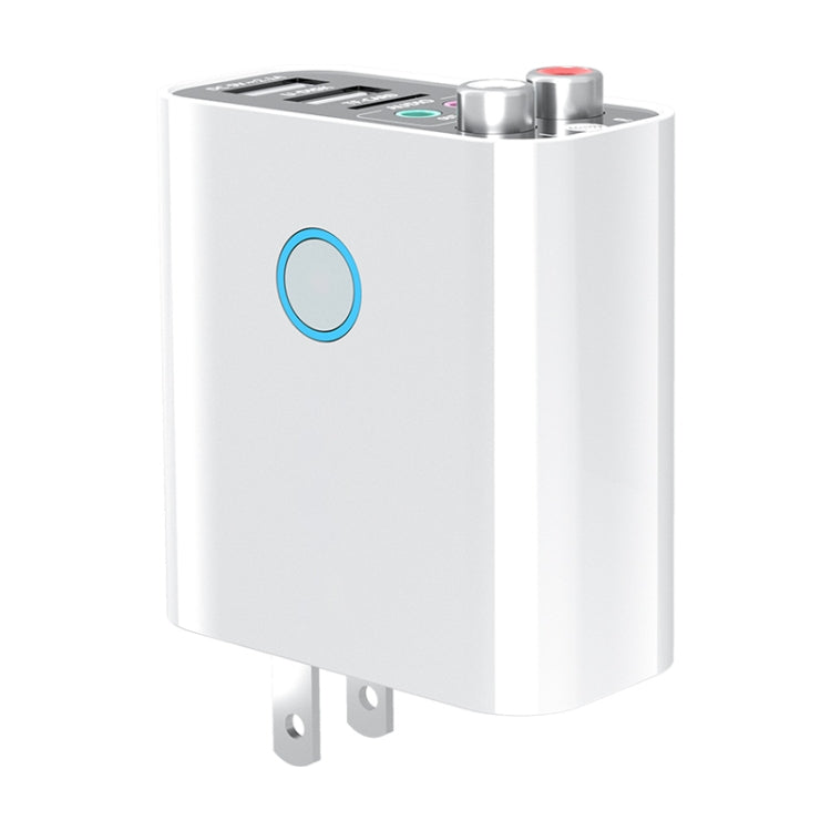 K16 2 in 1 3.5mm AUX + RAC Dual Output Plug-in Bluetooth 5.0 Audio Transmitter Receiver with Remote Control, US Plug (White)