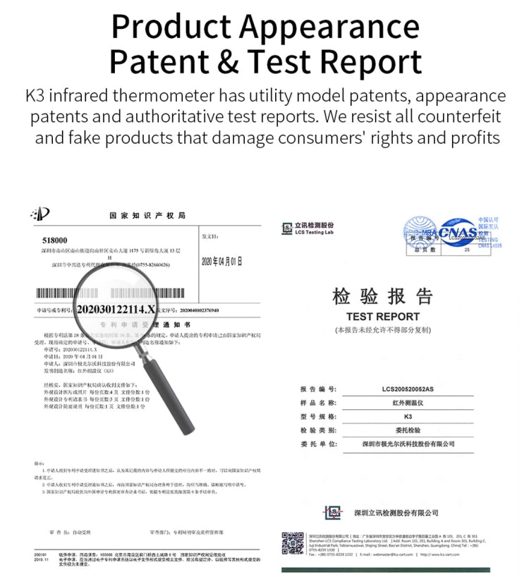 K3 Pro Handsfree Non-contact Forehead Body Light-sensitive Distance Sensor Infrared Thermometer, 2.8 inch LCD Display Screen