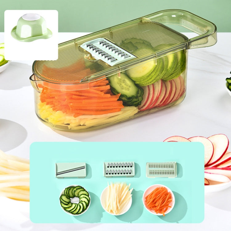 1. Material: cutting board: ABS, hand guard: PP+304 stainless steel, friction pad: TPR, slicing blade: ABS+420, shredding blade: ABS+430, body: PET