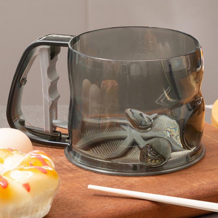 Kitchen Handheld Semi-Automatic Flour Sifter Baking Assistant Powder Sieving Tool(Tea Gray)