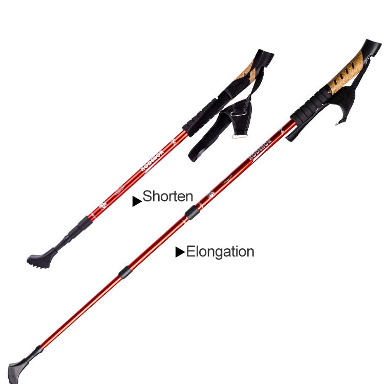 KODENOR Outdoor Mountaineering Portable Foldable Aluminium Alloy Straight Handle Alpenstocks Trekking Poles, Length : 66-135CM (Red)