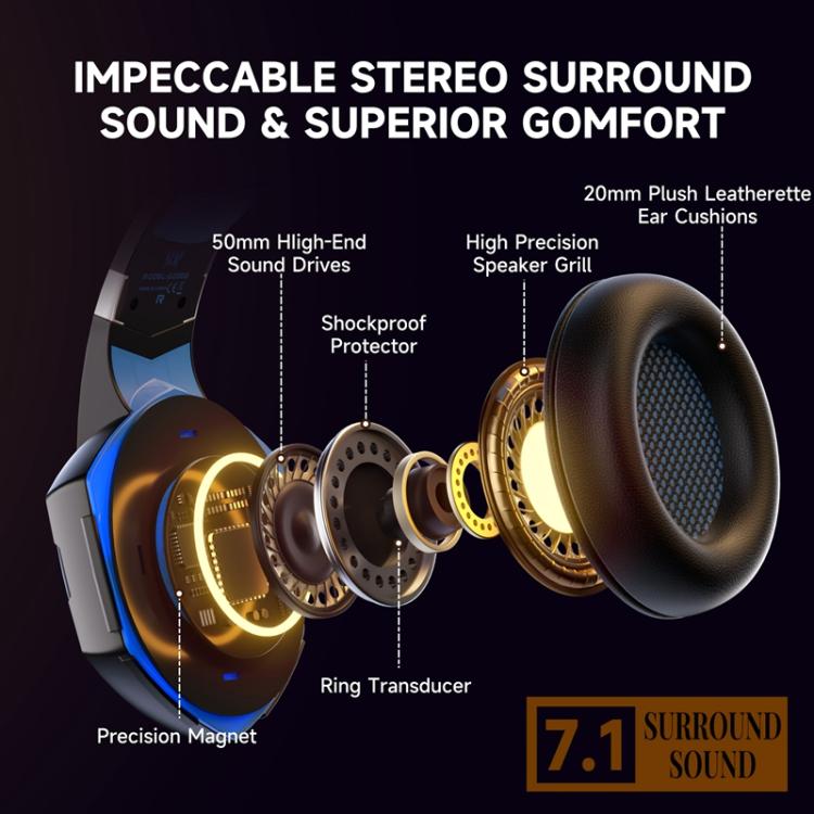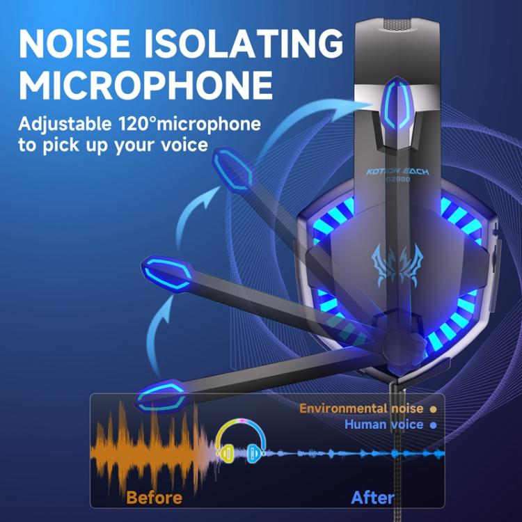 KOTION EACH G2000 Wired Game Headphones with LED Light(Black Blue)