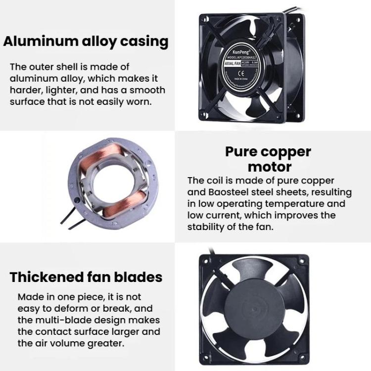KunPeng KP12038HAS2 12cm Oil-Impregnated Bearing Cooling Fan Industrial AC Fan, Spec: 110V