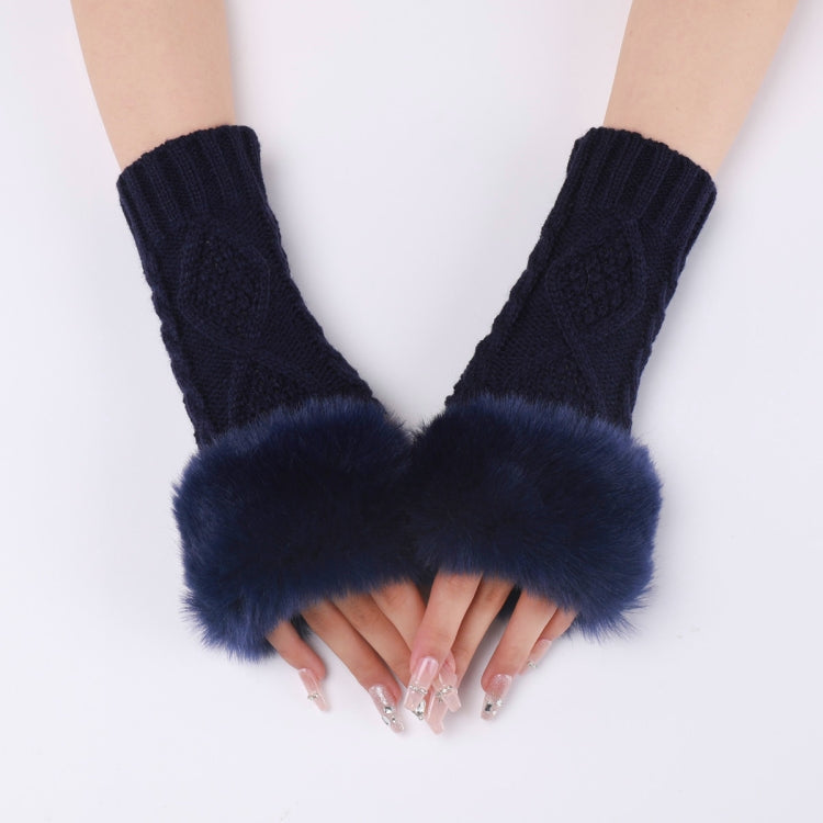 Ladies Short Type Furry Gloves Diamond Knit Warm Fingerless Arm Sleeves(Tibetan)