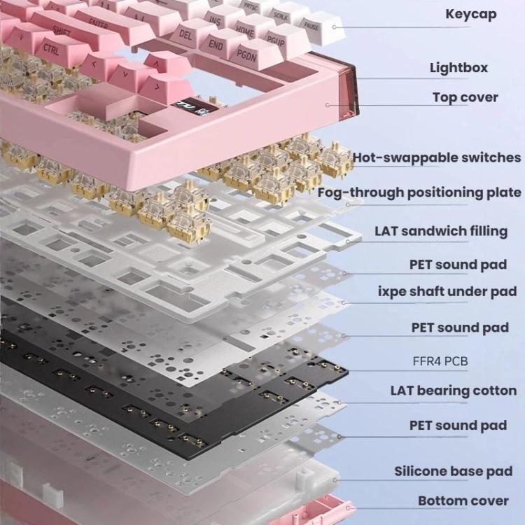 LANGTU T87 Hot-Pluggable Wireless Bluetooth Triple-Mode Mechanical Keyboard Office & Gaming Keyboard, Style: Northern Lights Ropax Axis 2K Dual 1K Light