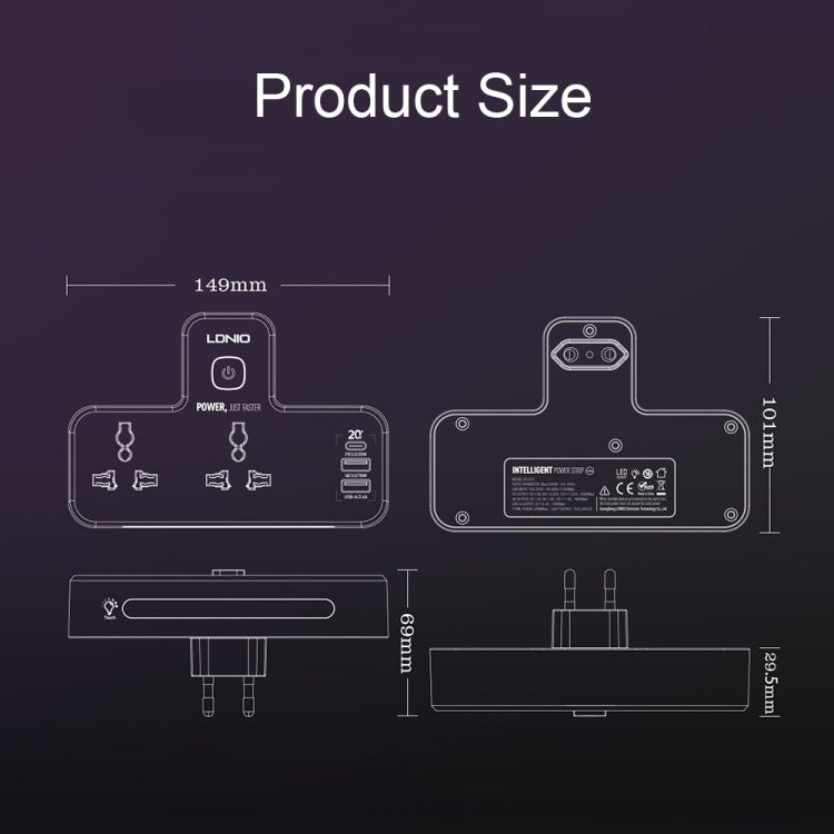 LDNIO SC2311 20W PD+QC 3.0 Multifunctional Home Fast Charging Socket with Night Light, Spec: EU Plug