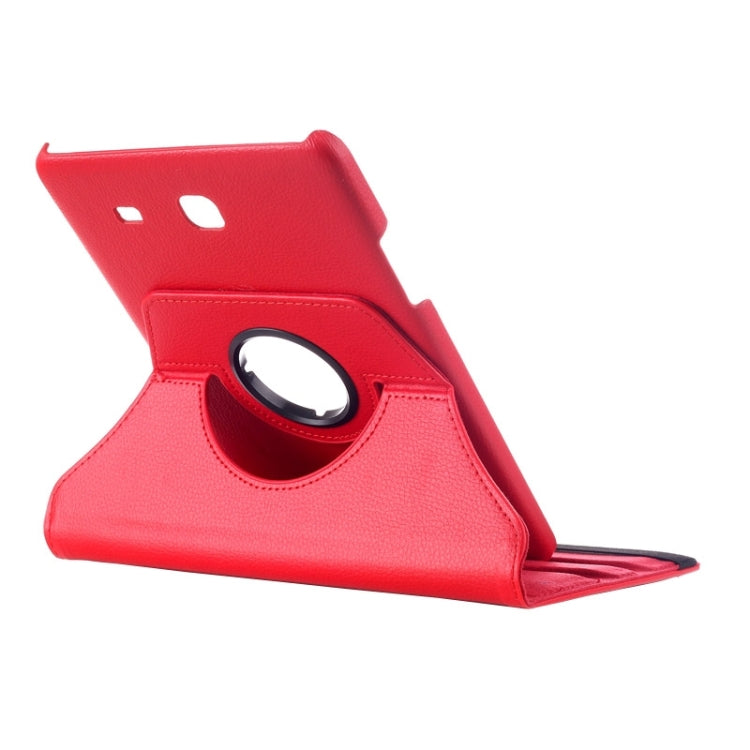 Litchi Texture 360 Degree Rotation Leather Case with Multi-functional Holder for Galaxy Tab E 9.6(Red)