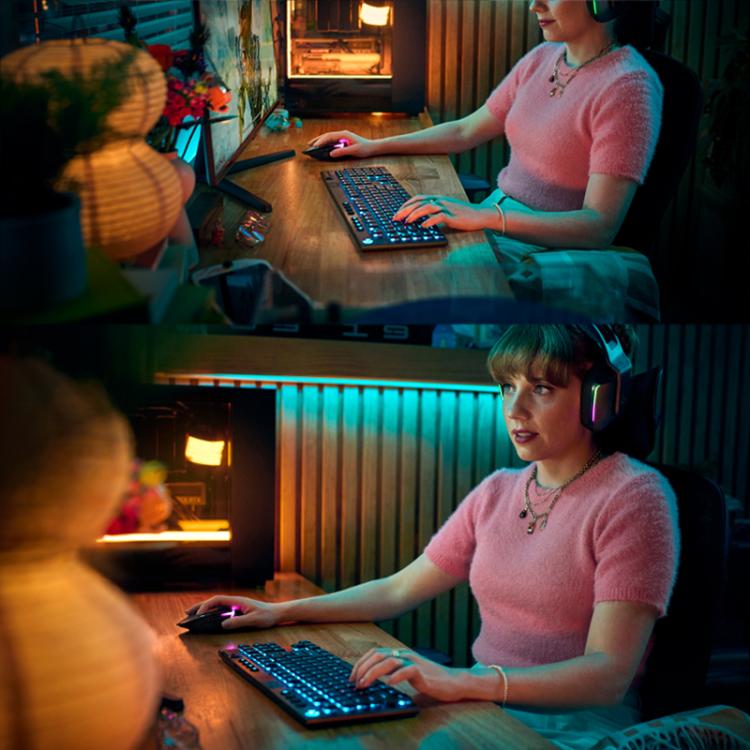 3. Easily change lighting effects and adjust brightness with onboard controls. Select from seven preset animations by pressing the brightness soft key plus numbers 1-7. Create up to two of your own lighting profiles using G HUB software and save the profiles to numbers 8 and 9.