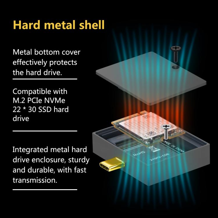5. Thickened and sturdy metal bottom cover to effectively protect the safety of the hard drive
