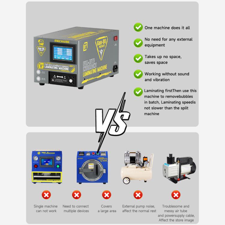 1. Full-auto intelligent laminating and defoaming all-in-one machine, 4-in-1 laminating defoaming, support straight/curved/flat screen defoaming, no cumbersome manual, one-click start