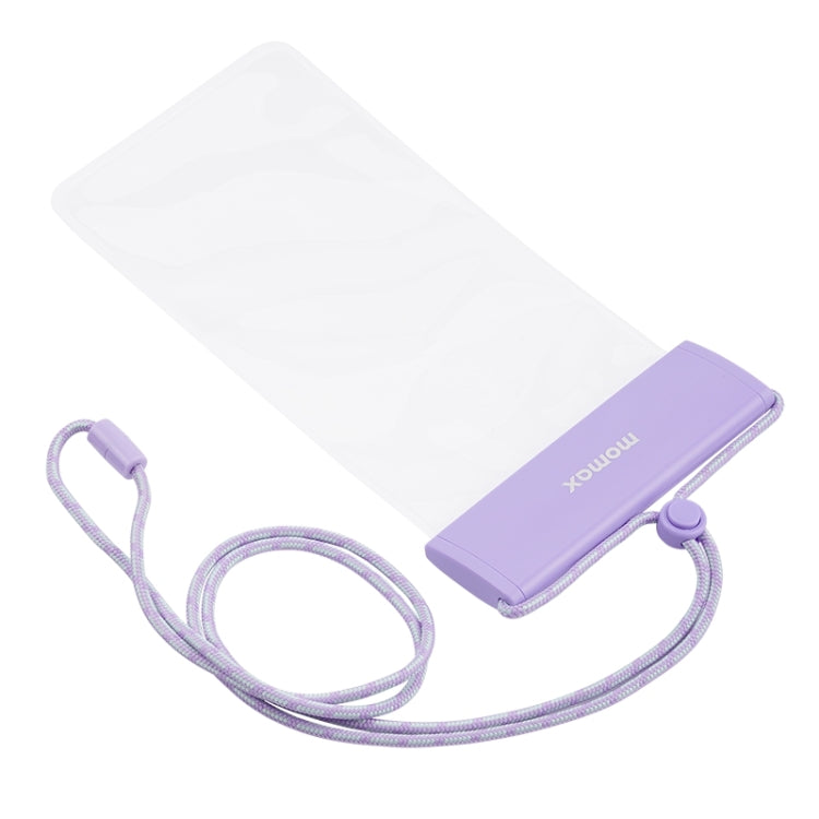 MOMAX SR25 IPX8 Outdoor Transparent PC+TPU Waterproof Bag with Lanyard For Mobile Phones Below 7 inche(Purple)