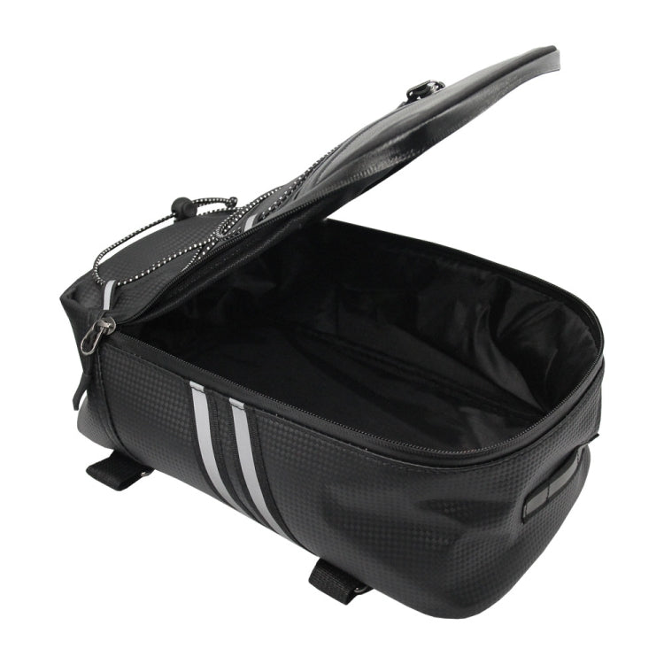 1. This bike trunk bag not only made of water-resistant PU material and waterproof zippers, can be full waterproof during cycling, but also with Large area of reflective cloth stitching design makes night travel safer