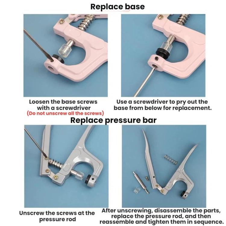 7. To install different types of snaps, the corresponding base and pressure rod need to be replaced.