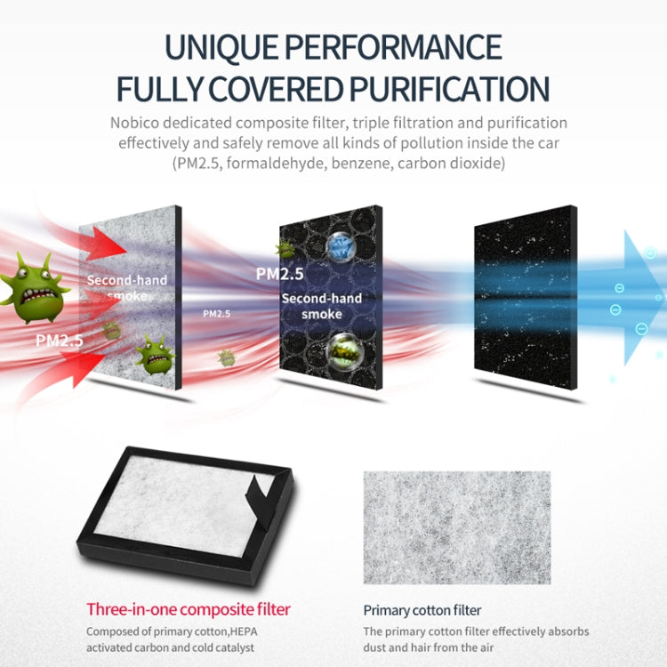 2. Composite filter, triple filtration and purification, effectively and safely remove all kinds of pollution in the car (PM2.5, formaldehyde, benzene, carbon dioxide)