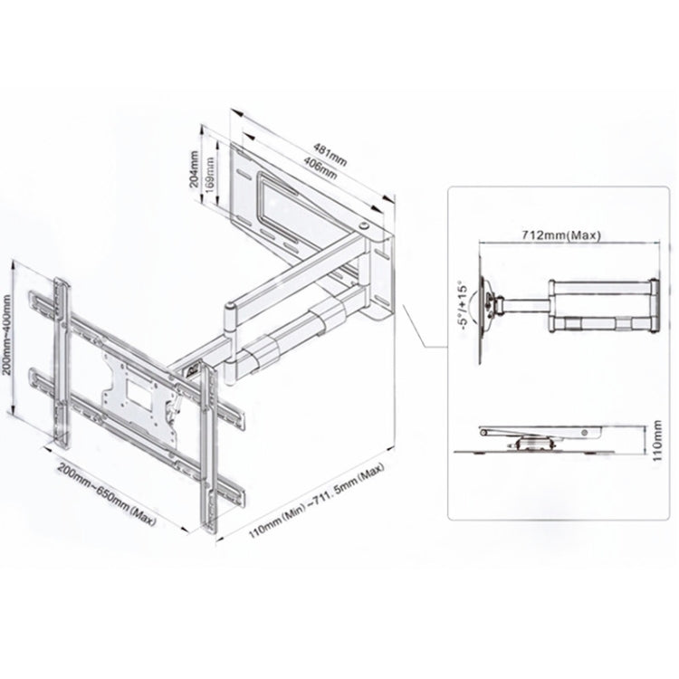 5. Swivel: -90 degree~ +90 degree (TV Size below 52 inch can swivel 90 degree)