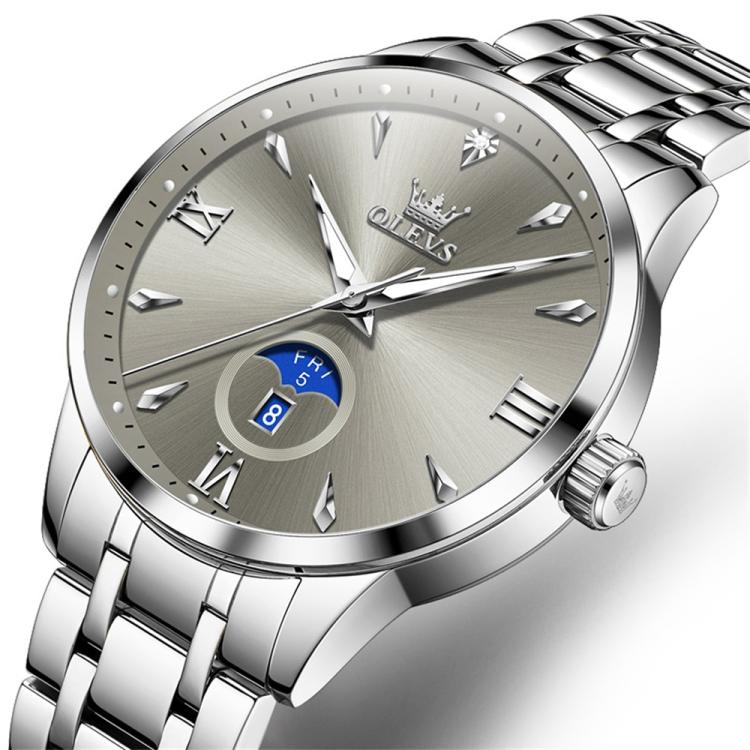 OLEVS 3646 Men Multifunctional Moon Phase Stone Waterproof Quartz Watch(Grey)