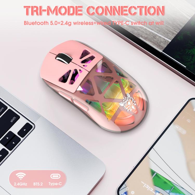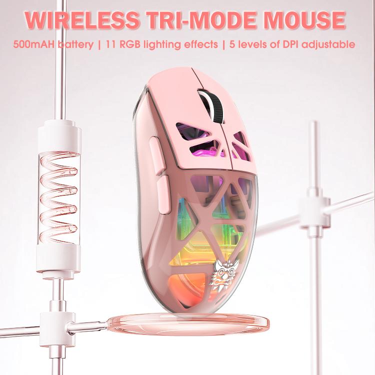 ONIKUMA CW930 2.4GHz + BT + Wired Tri-mode RGB Wireless Mouse(Pink)