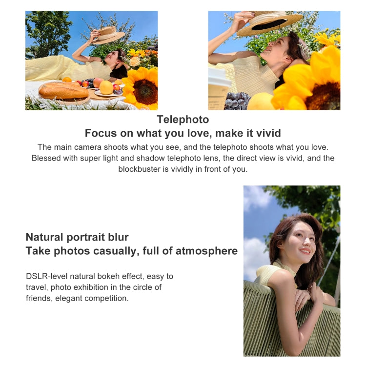 5. Photography function: Photo, video, night scene, professional, panorama, portrait, time-lapse photography, slow motion, super text, ultra-clear quality, movie, multi-view video, cute shot, AI ID photo; Front: Photo, video, panorama, portrait, night scene, time-lapse photography, multi-view video, cute shot, AI ID photo.