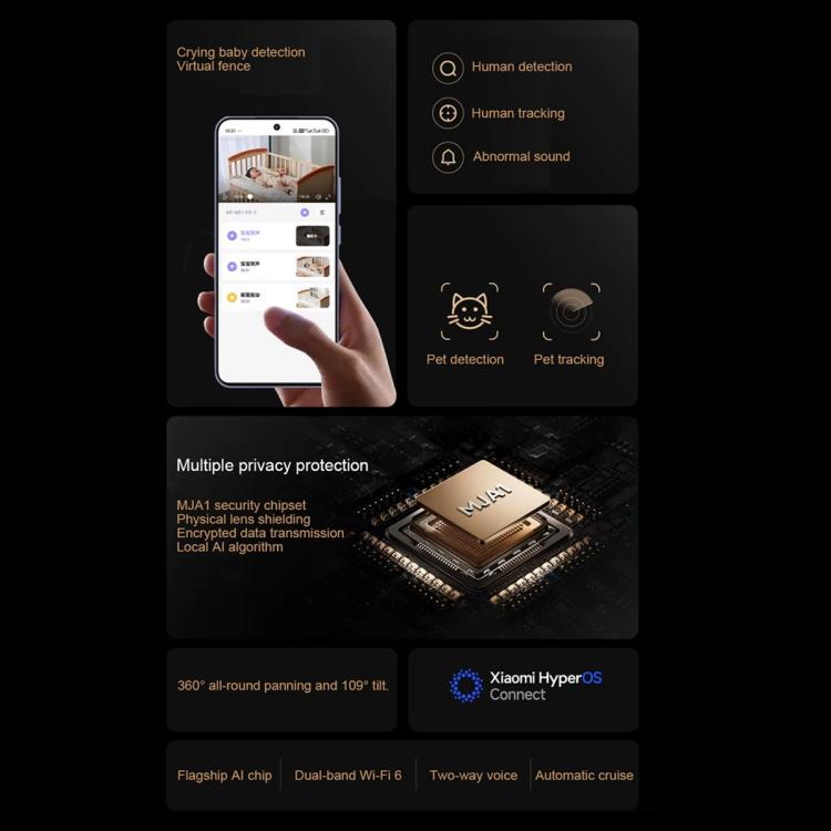9. Mi Home App Integration: Control, configure AI settings, access live view, receive alerts, and customize monitoring modes, all from the Mi Home app.