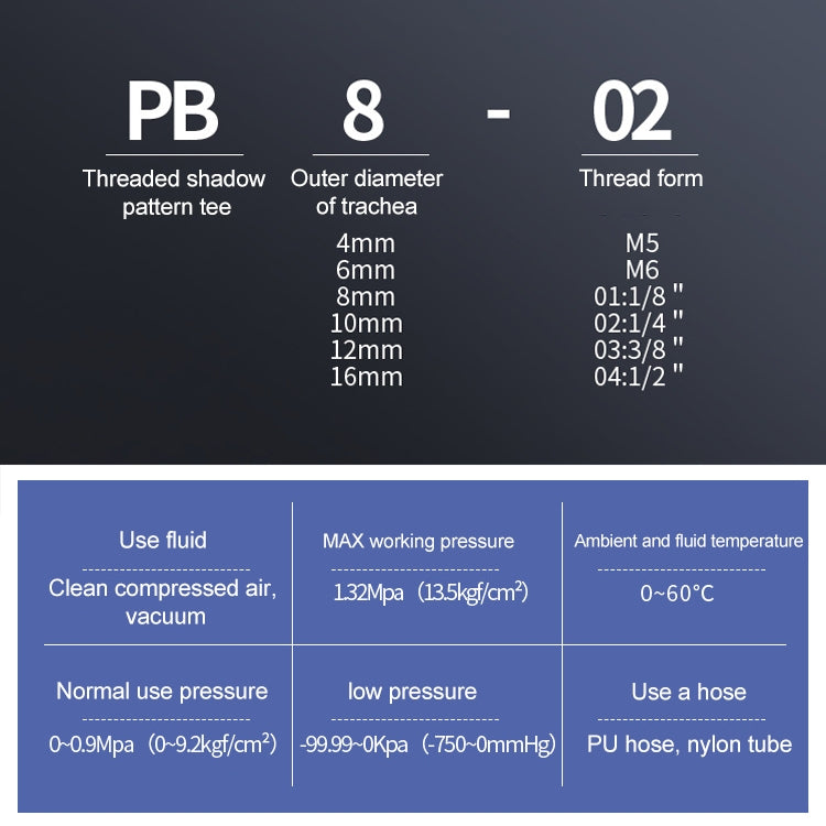 PB10-03 LAIZE 2pcs Plastic T-type Tee Male Thread Pneumatic Quick Connector
