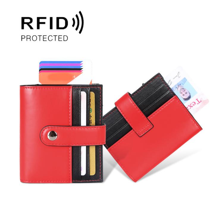 Pop-Up Aluminum Card Case RFID Blocking Metal Card Holder Wallet For Men and Women(Red)