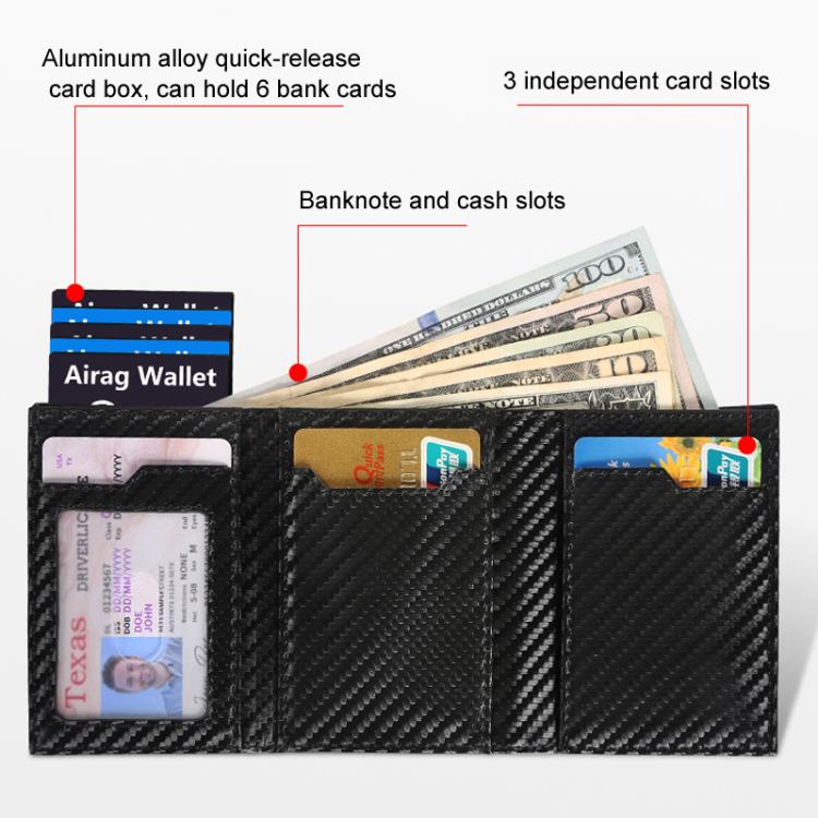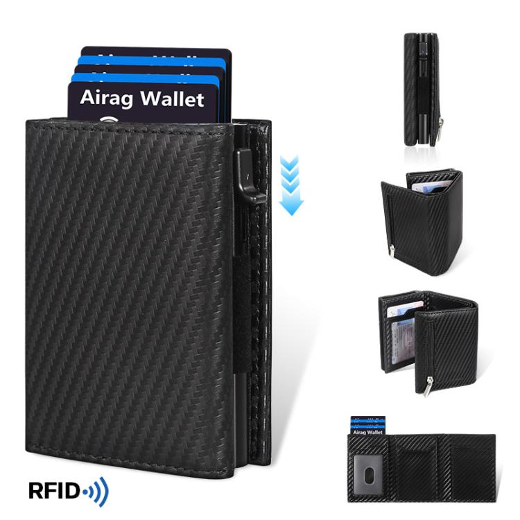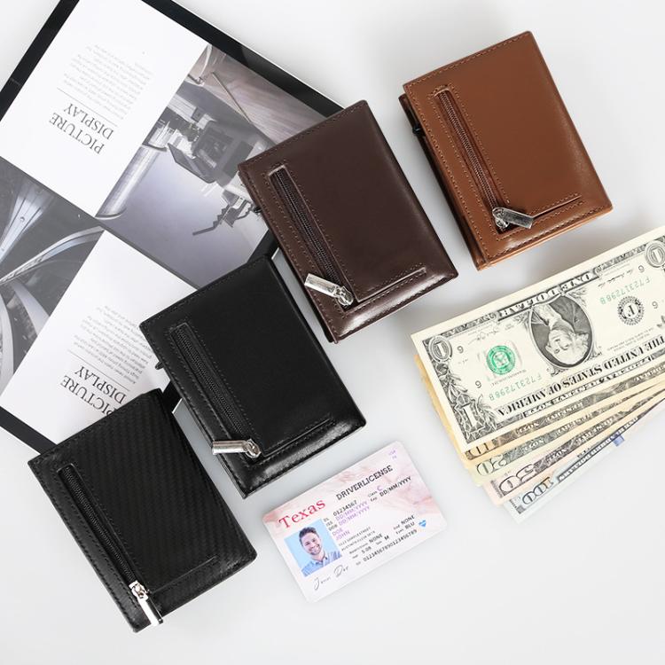 1. Automatic Pop-up RFID-Blocking Mens Cardholder: Integrates quick card ejection design and RFID protection, featuring 6 bank card slots + 3 dedicated card pockets + bill compartment + zippered coin pouch.