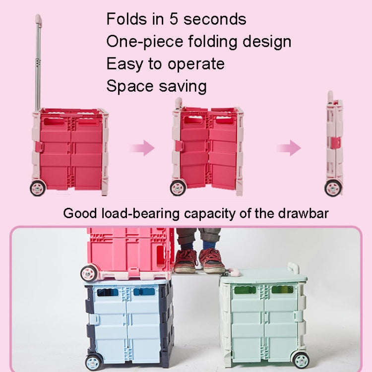Portable Plastic Folding Shopping Cart Grocery Shopping Small Trolley Cart, Style: Two Wheels Dark Blue(Medium)