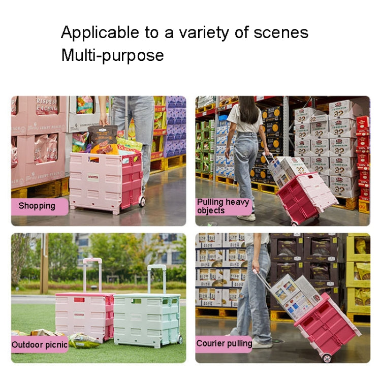 Portable Plastic Folding Shopping Cart Grocery Shopping Small Trolley Cart, Style: Two Wheels Rose Pink(Large)
