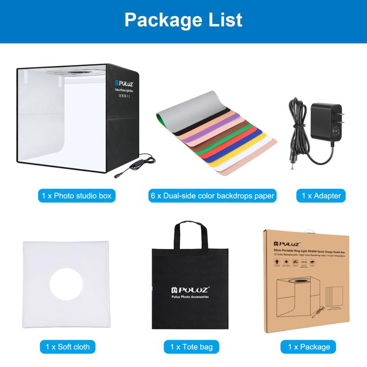 Features1. Photo light box: 50 x 50cm 3 color (white light, soft light, warm light) 10-level (1 percent - 100 percent) adjustable studio photo light box, the brightness is times of ordinary light boxes, no strobe and flashing. Apply to professional photographer to take high quality photos. The light diffuser given away makes photos softer.